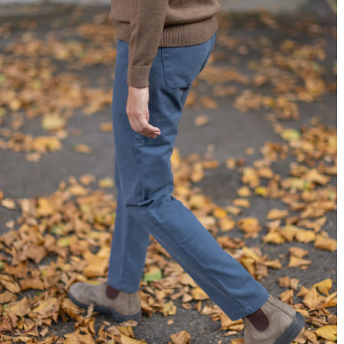 The Canvas Cham Pants in River are durable and comfortable pants made from sturdy canvas fabric. The "River" color is a cool, calming blue. These pants have a relaxed fit making them great for everyday wear or casual outings. They are designed to be both stylish and practical, with a simple look that pairs well with various tops.