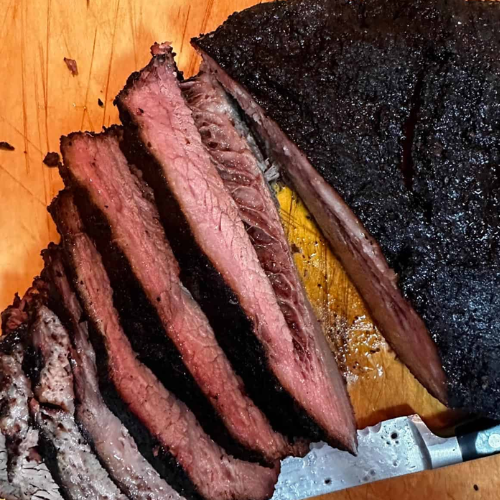 - Place the brisket on the smoker and add wood pellets for flavor.