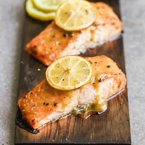 - Put salmon on the soaked cedar plank and place it on the grill.