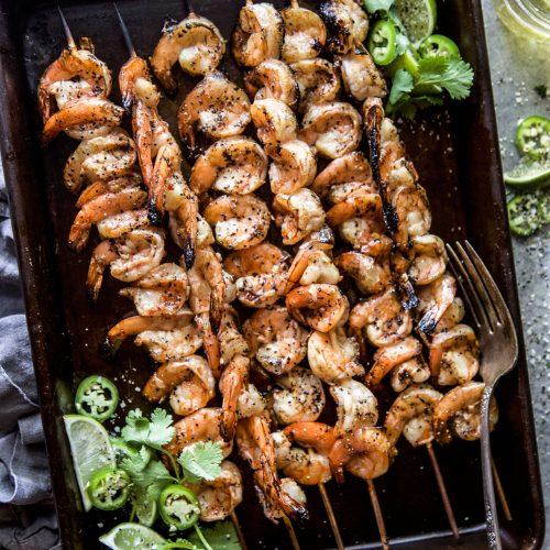 - Grill shrimp for 2–3 minutes per side until pink and lightly charred.