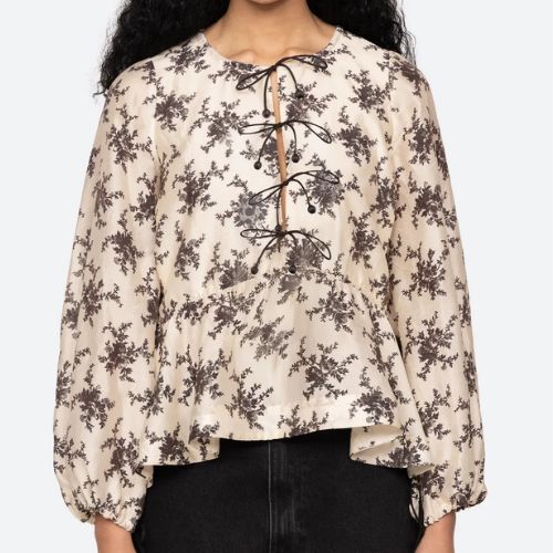The Joan Top features long puff sleeves and a delicate front tie closure. It is made up of 80% viscose and 20% nylon, which makes it soft and comfortable to wear. The top features a delicate floral pattern that gives your dress a romantic touch. The print reflects Sea New York’s love inspired by nature and vintage aesthetics. You can pair it with jeans, trousers and skirts to complete the look. It is perfect for brunches, date nights or casual events. It’s a versatile piece that remains easy to wear and looks stylish and aesthetic for years.