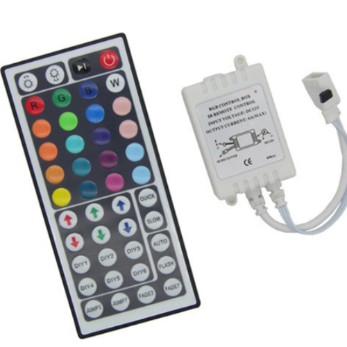 The 44 Keys IR Control Box lets you control RGB LED strips, which are flexible lights that change colors. Plug the LED strip into the box, then use the 44-button remote to change colors, adjust brightness, and select different light effects. It`s a fun way to customize your lighting and enhance any space or project.